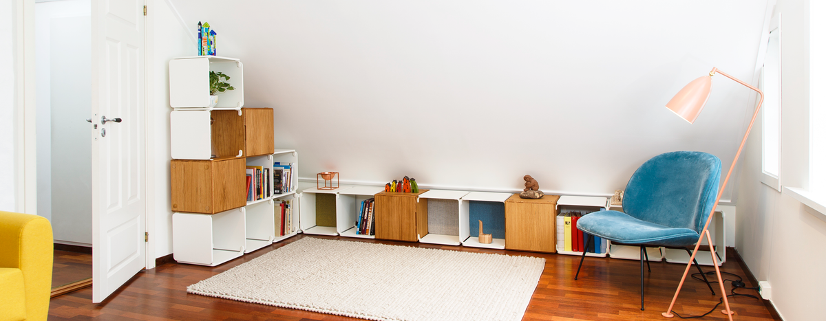 Sittepute eller dekorelement som også fungerer som lydabsorbent. Møbelpute trukket med stoff i ull fra Gudbrandsdalens Uldvarefabrik. Finnes i ulike farger og passer inni eller oppå Ope-kubene.
